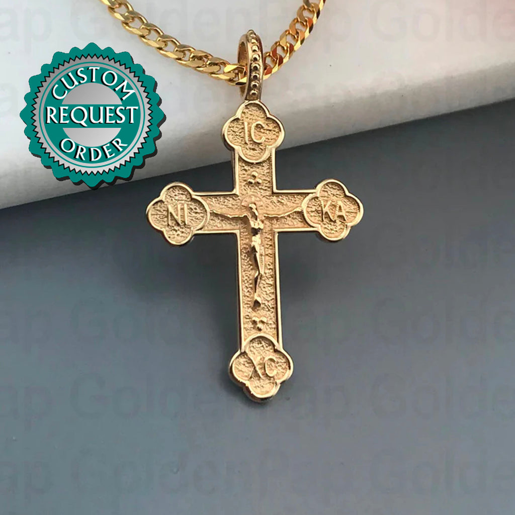 CUSTOM 14k (for Norway) solid gold cross with Jesus Christ, double sided cross (sku: CRTR17A)
